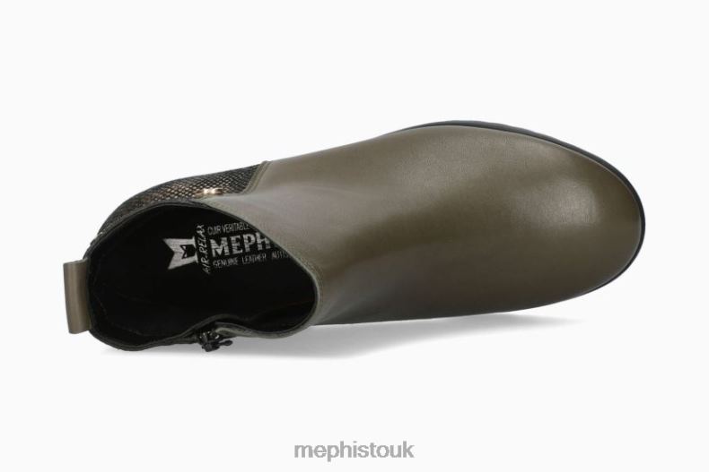 MEPHISTO ITTORIA | Women Ankle Boots Green Leather Smooth. This classic style ankle boot is the ideal shoe for autumn and winter. The detachable insole, with integrated SOFT-AIR technology, and the outsole, equipped with SHOCK-ABSORBER, minimise impact and guarantee an effortless walk with a spring in your step. The AIR-RELAX technology respects the anatomy of the foot, preventing fallen arches. They are easy to put on thanks to their zipper on the instep. The warm textile lining combined with the leather lining guarantees thermal comfort for the foot in all weathers.