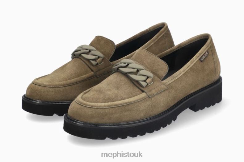 MEPHISTO SALKA | Women Mocassins Green Leather Velvet. This feminine moccasin is handcrafted in very high quality leather. The SHOCK-ABSORBER, in the outsole, and the detachable insole, with integrated SOFT-AIR Technology, help to absorb impact from walking. Its leather lining promotes a healthy climate inside the shoe. The ornament on the top of the foot perfectly combines elegance and modernity.