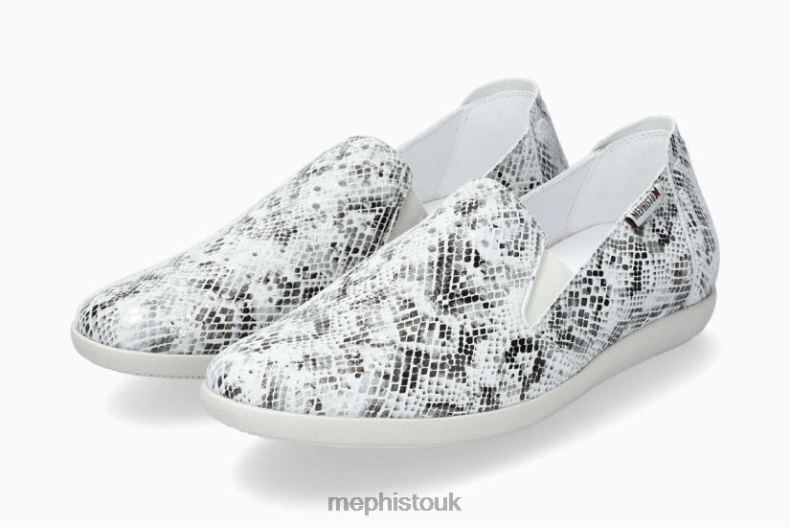 A very comfortable slip-on, decorated with perforations at the front. The detachable insole, with integrated SOFT-AIR Technology, helps to absorb impact from walking. This leather-lined slip-on is perfect to complete your look. MEPHISTO KORIE PERF | Women Shoes Grey Leather Reptile Print