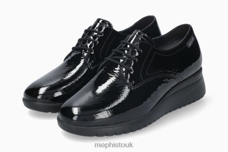 MEPHISTO IACINA | Women Shoes Black Leather Varnished. This shoe guarantees an unparalleled comfort and an exceptional fit. The SHOCK-ABSORBER, in the outsole, and the detachable insole, with integrated SOFT-AIR Technology, help to minimise impact for a gentle, effortless walk. This lace-up shoe offers optimal comfort and an excellent fit. The leather lining ensures good foot hygiene.