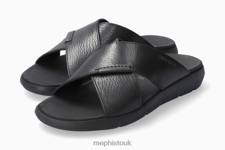 This lightweight mule with crossover straps is a must for a relaxed summer. The SOFT-AIR midsole and SHOCK-ABSORBER help to minimise impact for an effortless walk with a spring in your step. MEPHISTO CONRAD | Men Sandals Black Leather Crumpled Effect