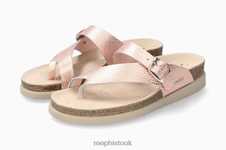 This marvellously lightweight ladies' toe post sandal, with its relaxed look, promotes a perfect sensation of well-being. The unique SOFT-AIR technology, integrated in the cork midsole, guarantees an effortless walk. The AIR-RELAX technology respects the anatomy of the foot to prevent fallen arches. Adjustable strap with buckle fastening. MEPHISTO HELEN | Women Cork Sandals Pink Leather Metallic Grainy