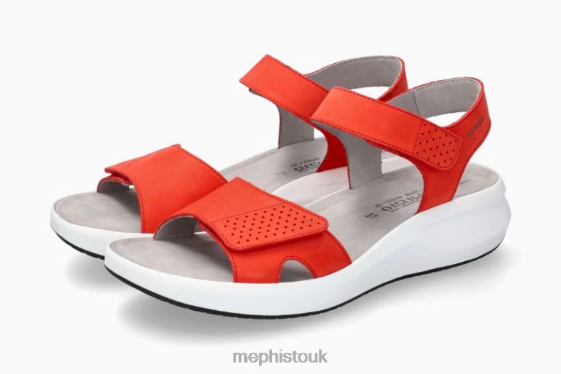 MEPHISTO TANY | Women Sandals Red Leather Nubuck. This sandal, with its sporty, feminine allure, sets itself apart with its platform design. Enjoy unparalleled comfort thanks to the SHOCK-ABSORBER, in the outsole, and its SOFT-AIR midsole, which help to reduce impact from walking. The AIR-RELAX technology respects the anatomy of the foot to prevent fallen arches. The adjustable adhesive straps ensure a perfect fit. Its real leather lining guarantees superior quality and comfort.