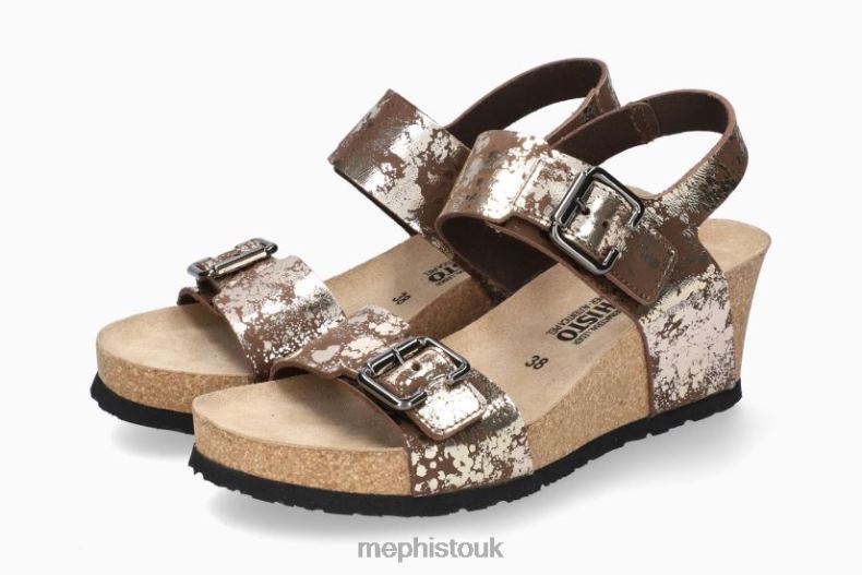 MEPHISTO LISSANDRA | Women Cork Sandals Dark Brown Leather Fancy Printing. This lightweight ladies' sandal is a must for a relaxed summer. The SOFT-AIR cork sole minimises impact for a gentle, effortless walk. The AIR-RELAX technology respects the anatomy of the foot to prevent fallen arches. The adjustable adhesive straps, with decorative buckles, ensure perfect comfort and an exceptional fit.