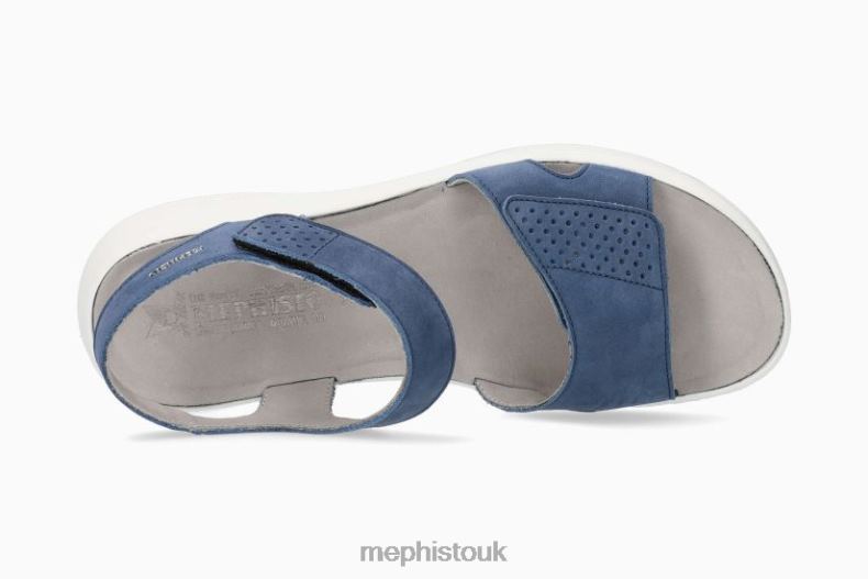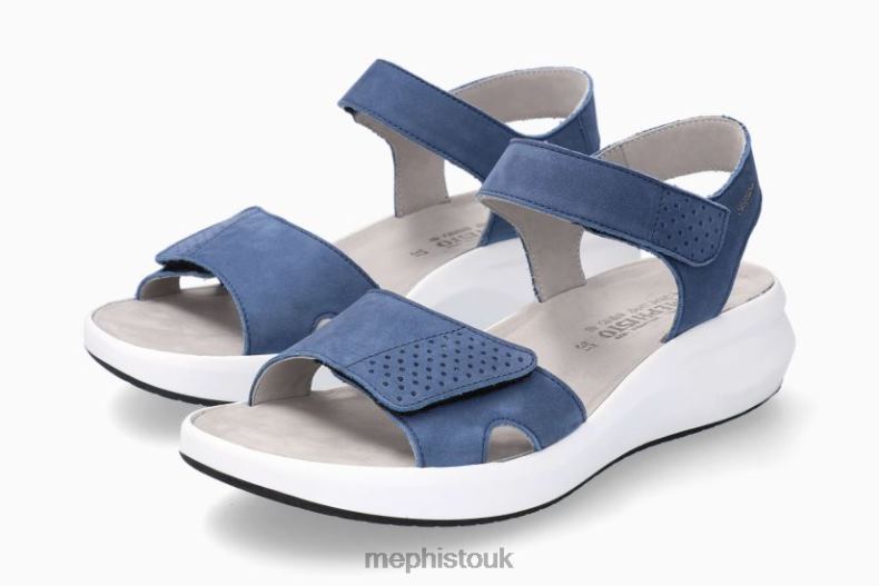 MEPHISTO TANY | Women Sandals Blue Leather Nubuck. This sandal, with its sporty, feminine allure, sets itself apart with its platform design. Enjoy unparalleled comfort thanks to the SHOCK-ABSORBER, in the outsole, and its SOFT-AIR midsole, which help to reduce impact from walking. The AIR-RELAX technology respects the anatomy of the foot to prevent fallen arches. The adjustable adhesive straps ensure a perfect fit. Its real leather lining guarantees superior quality and comfort.