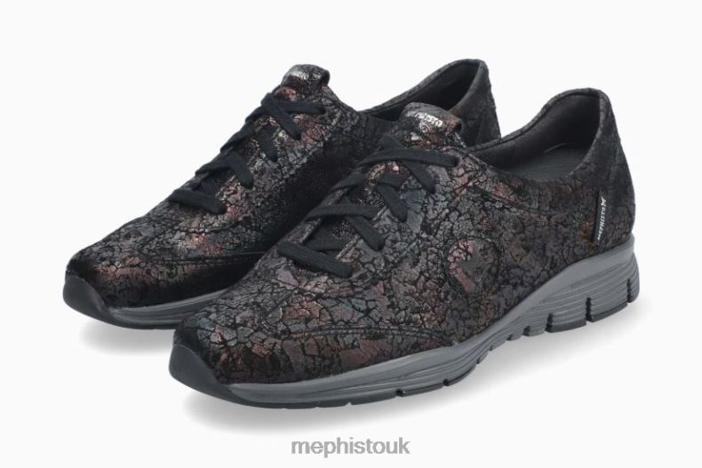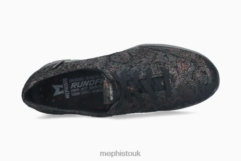 MEPHISTO YAEL | Women Sneaker Red Leather Metallic Fancy Print. Fashionable-look, ultra-lightweight sneaker, defined by a finely tailored cut. The detachable insole, with integrated SOFT-AIR Technology, and the SHOCK-ABSORBER, in the outsole, help to minimise impact for a gentle, effortless walk. This lace-up shoe ensures optimum comfort and an excellent fit. The leather lining promotes a healthy climate inside the shoe.