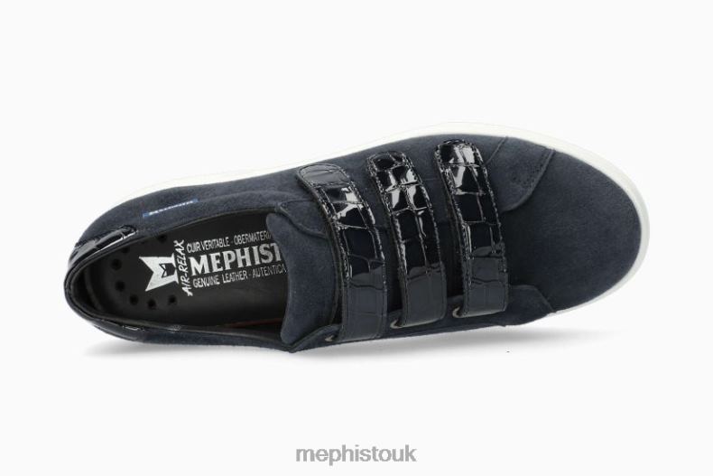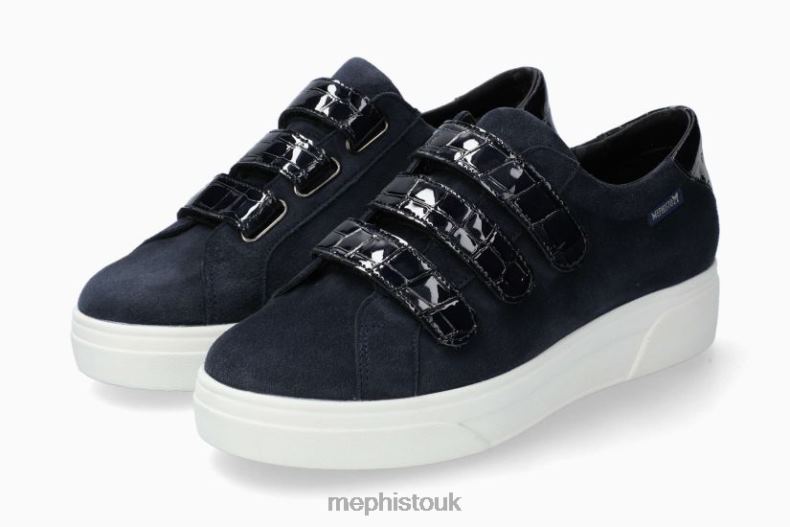 MEPHISTO FREDERICA | Women Sneaker Dark Blue Leather Velvet. This fashionable, ultra-lightweight sneaker ensures optimum comfort. The detachable insole, with integrated SOFT-AIR technology, and the outsole, equipped with SHOCK-ABSORBER, minimise impact and guarantee an effortless walk with a spring in your step. The AIR-RELAX technology respects the anatomy of the foot to prevent fallen arches. The adjustable adhesive straps ensure a perfect fit. The leather lining ensures a healthy climate inside the shoe.