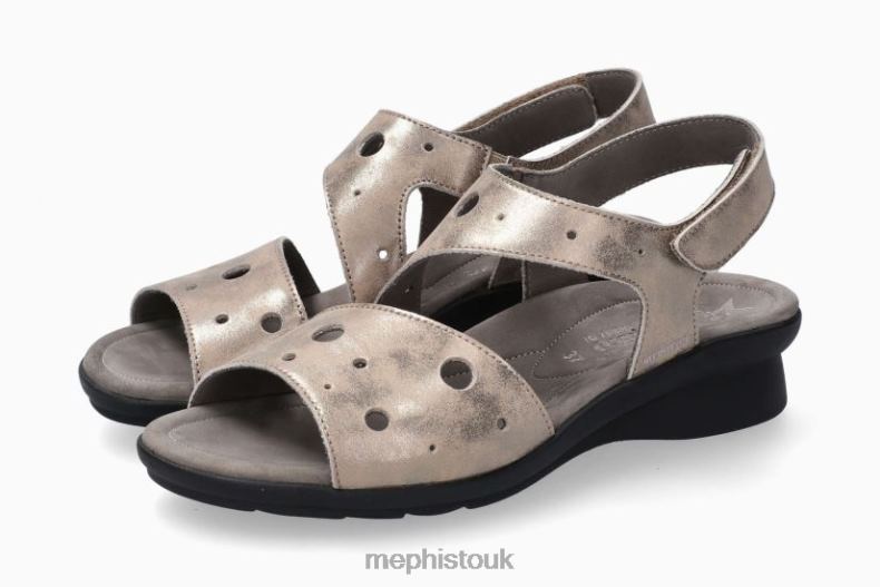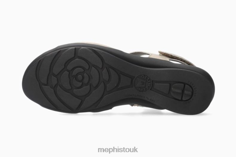 PHIBY PERF model by MEPHISTO: With its sporty, relaxed look, this sandal guarantees unparalleled comfort.The leather lining favours a healthy climate and adds exceptional comfort.This ladies' brown sandal is made of metallic leather.